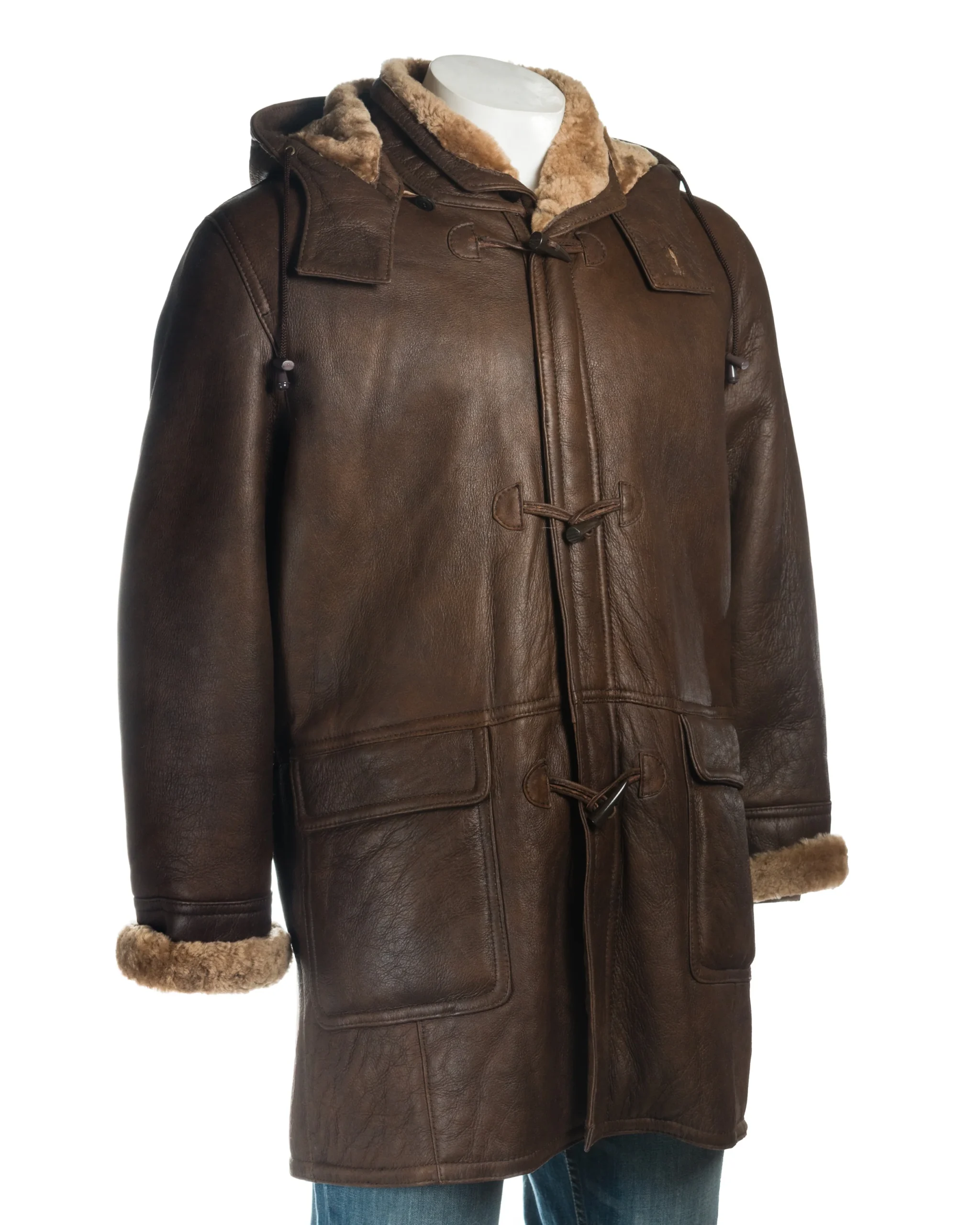 Men’s Sheepskin Duffle Coat with Detachable Hood